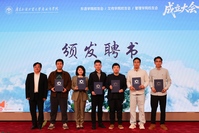 学校领导依次为东语、文传、管理学院校友会委员会成员颁发聘书