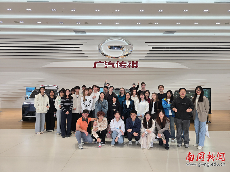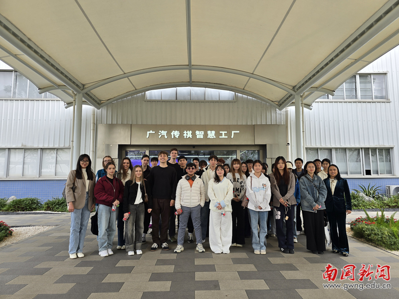 本网讯 11月27日下午,国际学院组织全体留学生和部分中外联合培养项目班学生一行35人走进广汽传祺工厂,开展了一场别开生面的实践教学活动。通过深入智能化生产车间与品牌展览馆,国际学院留学生们和国际班学生近距离感受了中国汽车制造业的科技实力与创新活力。