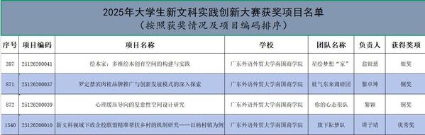 在本次大赛中,我校学子凭借扎实的专业功底和创新的实践项目一路过关斩将。其中,《绘本家:多维绘本创育空间的构建与实践》项目历经专家网络评审、现场路演及答辩的层层选拔,最终摘得国家级银奖;《心理缓压导向的复愈性空间设计研究》与《罗定榃滨肉桂品牌推广与创新发展模式的深入探索》两个项目齐头并进,双双获得国家级铜奖;《新文科视域下政企校联盟精准帮扶乡村的机制研究—— 以杨村镇为例》则获国家级优秀奖,多维度展现了我校在新文科实践领域的创新成果。