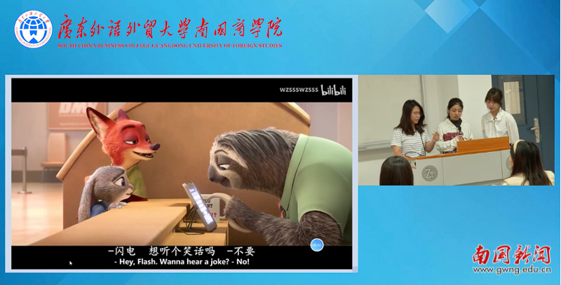 决赛环节,各参赛队伍面临着颇具挑战性的配音任务。学院精心准备了不同风格的影视片段,旨在全面考查学生的英语综合素养和表演能力。单人小队的配音材料选取自经典动画电影《疯狂原始人》,要求参赛学生对小伊的独白进行配音,且需让台词节奏与背景音乐完美契合,这对学生的语感和节奏把握能力提出了极高要求。双人小队则负责奥斯卡最佳影片《绿皮书》中两位主角的对话配音。其中一人发音考究、谈吐优雅,另一人略带口音、谈吐粗俗,学生需要精准地呈现出这种鲜明的对比,充分展现角色的个性特点。三人小队的配音素材来自热门动画《疯狂动物城》,是兔子与狐狸到车管所找树懒查询车牌号的精彩一幕。学生们需要默契配合,生动表现出兔子的急迫与无奈、狐狸的调皮捣蛋以及树懒独特的说话节奏,这对团队协作和角色塑造能力是一个极大的考验。