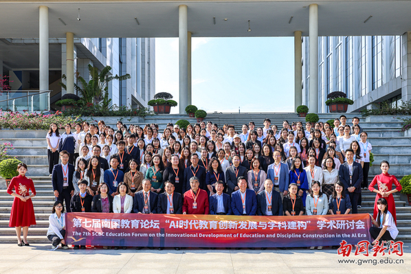 本网讯 12月11日,第七届南国教育论坛在学校国际学术报告厅举办。本届论坛以“智能时代教育创新发展与学科构建”为主题,采用“线上云端联动+线下主会场研讨”的混合模式,直面教育数字化转型中的深层挑战,探索教育专用大模型与师生数字素养培育的实践路径,为建校30周年献上了一份厚实的学术贺礼。论坛汇聚了校内外教育领域的权威专家、一线教育工作者。我校校长王华教授,副校长王铭玉教授、王关义教授,教育学院领导及师生代表也共同参与,形成了多层次、高水平的学术交流格局。