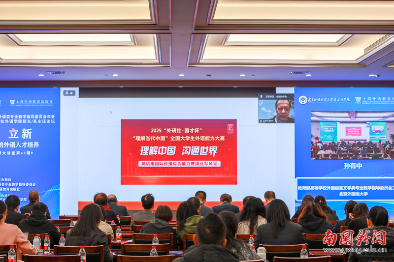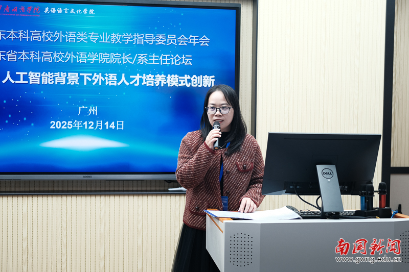 本网讯 2025年12月14日,广东省本科高校外语类专业教学指导委员会年会暨广东省本科高校外语学院院长/系主任论坛在我校国际学术报告厅举办。论坛由广东省本科高校外语类专业教学指导委员会与上海外语教育出版社联合主办,我校英语语言文化学院承办。论坛以“破局·立新——AI时代的外语人才培养”为主题,汇聚全省30余所高校的百余名外语教育专家,聚焦人工智能时代外语教育的转型路径与创新实践,通过主旨报告、平行论坛等多维度研讨,为构建“人机协同、文理融合”的外语教育新生态凝聚共识。