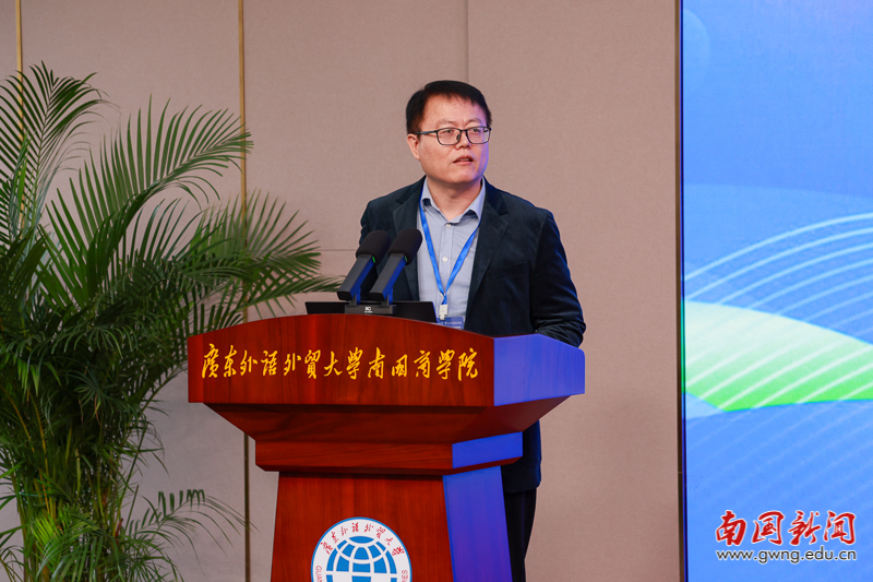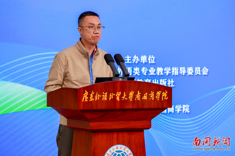 广东省本科高校外语类专业教学指导委员会主任委员、广外南国商学院副校长陈林汉代表主办方致辞,他从学科发展的战略高度强调,外语教育必须主动迎接挑战,通过深度的跨学科整合与系统性培养机制创新,审慎应对技术应用中的伦理规制、学科边界与文化多样性等深层议题,从而引领外语学科向智能化、融合化与全球化的新范式演进。