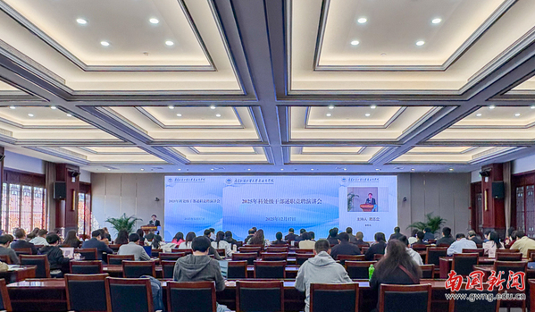 本网讯 为全面考察我校干部工作实绩、搭建人才展示平台,根据学校2025年科处级干部换届实施方案部署,我校于12月17日下午在国际学术报告厅举行首场科处级干部述职竞聘演讲会,标志着为期一周的换届工作全面启动。首场活动面向教学单位,干部换届工作领导小组成员、首批述职竞聘人员参加会议。