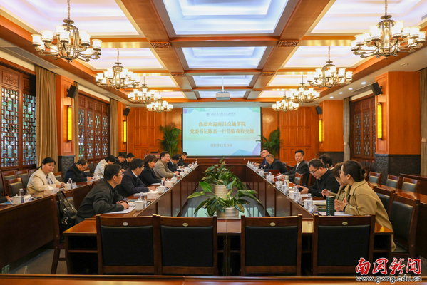 本网讯 12月26日上午,南昌交通学院党委书记陈磊一行来访我校,围绕校园建设、特色办学、产教融合、党建工作等多方面核心议题深入探讨,旨在互学互鉴、共谋发展。我校党委副书记、副校长赵福春教授及相关职能部门负责人接待来访,双方在行政楼国际会议厅举行座谈。