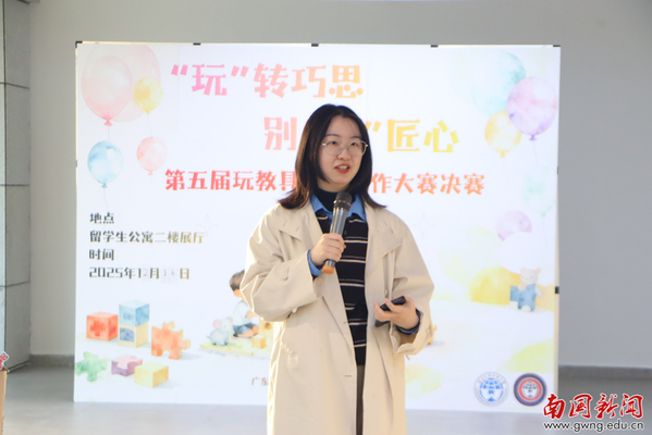活动伊始,翁琳为大赛致辞。她充分肯定了各参赛团队在作品构思、文化融合与手工制作中展现的热情与匠心,特别指出本届选手在完成基础赛项的同时,还创作了古诗词主题玩教具,体现出坚持不懈的探索精神。为进一步拓展大赛育人成效与社会影响,翁琳副院长提出后续推动作品成果转化的多项构想,包括将优秀作品纳入学院教学成果可视化展示体系、通过学院官微等平台进行专题推介、在拟建的手工实训室中设立常设展区、对接深圳市优质幼儿园进行教学推广,以及积极探索与市区各级图书馆等公共文化机构合作举办公益展览,从而推动作品实现从赛场到课堂、从校园到社会的价值延伸。