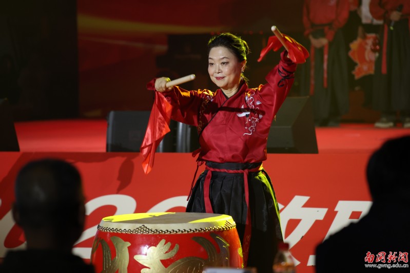 经济学院工会献唱《南国,始终你最好》,以气势恢宏的击鼓开场,伴随激昂的旋律,舞者挥剑扬旗,刚柔并济,深情唱响对母校的赤子之心,生动诠释了镌刻在南国人血脉中的那份深沉热爱与滚烫情怀。