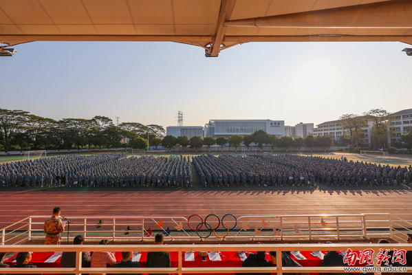 大会在庄严的升国旗、奏唱国歌仪式中开始。许志超作军训动员讲话,许志超书记在讲话中向关心支持学校国防教育和军训工作的白云区人民武装部、承担本次军训任务的全体教官表示感谢,向全体参训新生致以问候。他指出,为期14天的军训是大学生涯重要的实践课和青春路上的精神洗礼,是青年学子接受国防教育、强化国家安全意识的重要形式,也是学校落实立德树人根本任务的重要举措。他对参训同学提出三点希望:一是心怀家国,以赤诚赴训,在训练中体悟国防内涵与忧患意识,展现昂扬向上的精神风貌;二是锤炼意志,以坚毅践训,做到严于律己、令行禁止,吃苦耐劳、挑战自我,团结协作、荣辱与共;三是严守纪律,以规范保训,深植安全意识,严守训练规程,培养严谨细致的生活作风。他鼓励同学们以学校携笔从戎的优秀学子为榜样,在训练中挥洒汗水、锤炼品格、收获成长,以戎装为甲、以青春为刃,书写迷彩荣光。