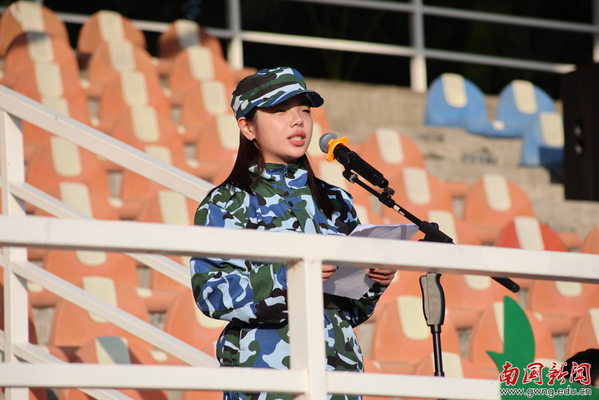 英语语言文化学院25级英语3班的张馨匀作为新生代表发言,她表示冬季军训是大学赠予的特殊一课,凛冽寒风是意志的试炼,将让大家的凝聚力愈发紧密。作为英文专业学生,她还以英文寄语“Military training is a precious journey for every new student. We’ll hold fast to the spirit forged here, and grow into more responsible, resilient and brighter individuals”,传递对军训的珍视与成长的期许。她代表全体参训同学郑重承诺,将以饱满热情和昂扬斗志全身心投入训练,服从命令、遵守纪律、互助共进,把军训中锤炼的坚韧、守纪与担当融入今后的求学与人生旅程。