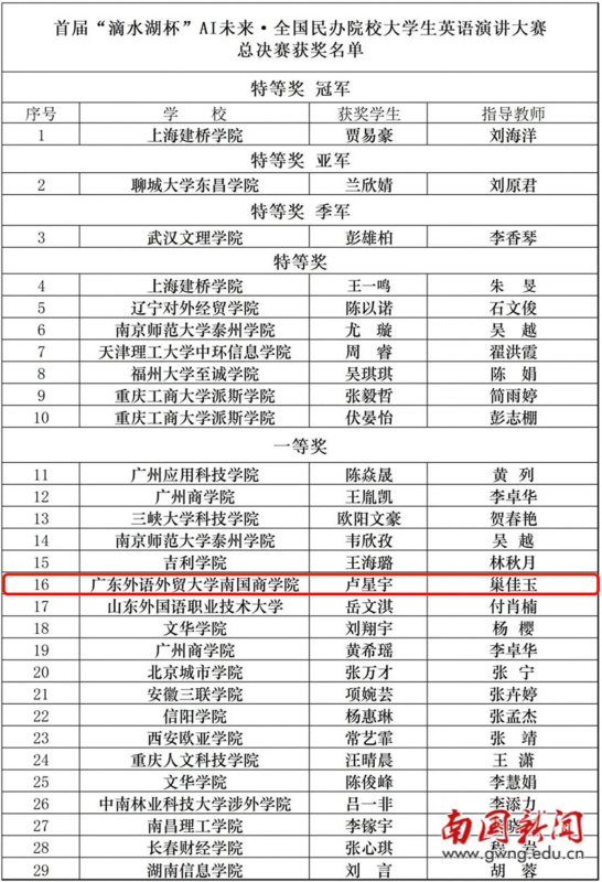 卢星宇同学在AI·未来全国民办院校英语演讲大赛中夺冠