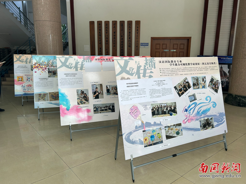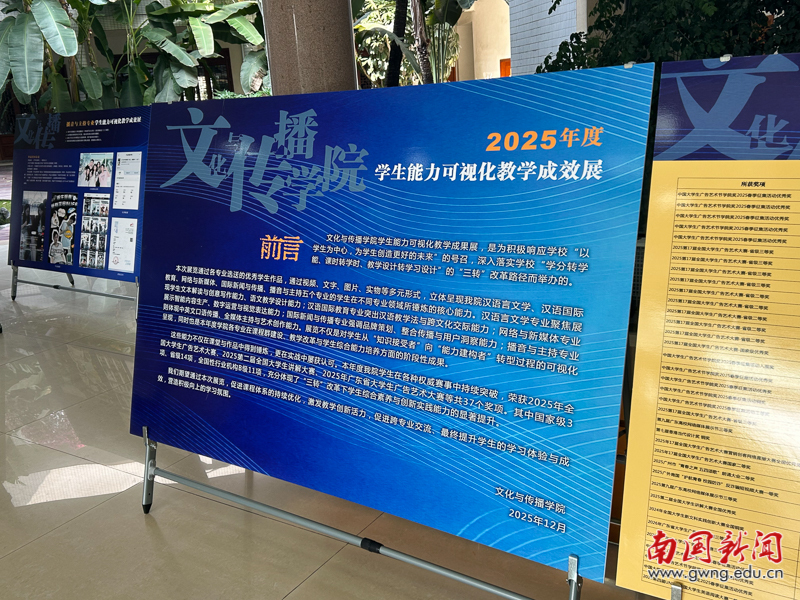 本网讯 为响应学校“三转”改革的生动实践,近日,文化与传播学院举办了“学生能力可视化教学成果展”。本次展览作品覆盖汉语言文学、汉语国际教育、网络与新媒体、国际新闻与传播、播音与主持艺术五大专业,以文字、图片、视频、实物等多元载体,清晰呈现出学生从“知识接受者” 向 “能力建构者” 的转型路径。