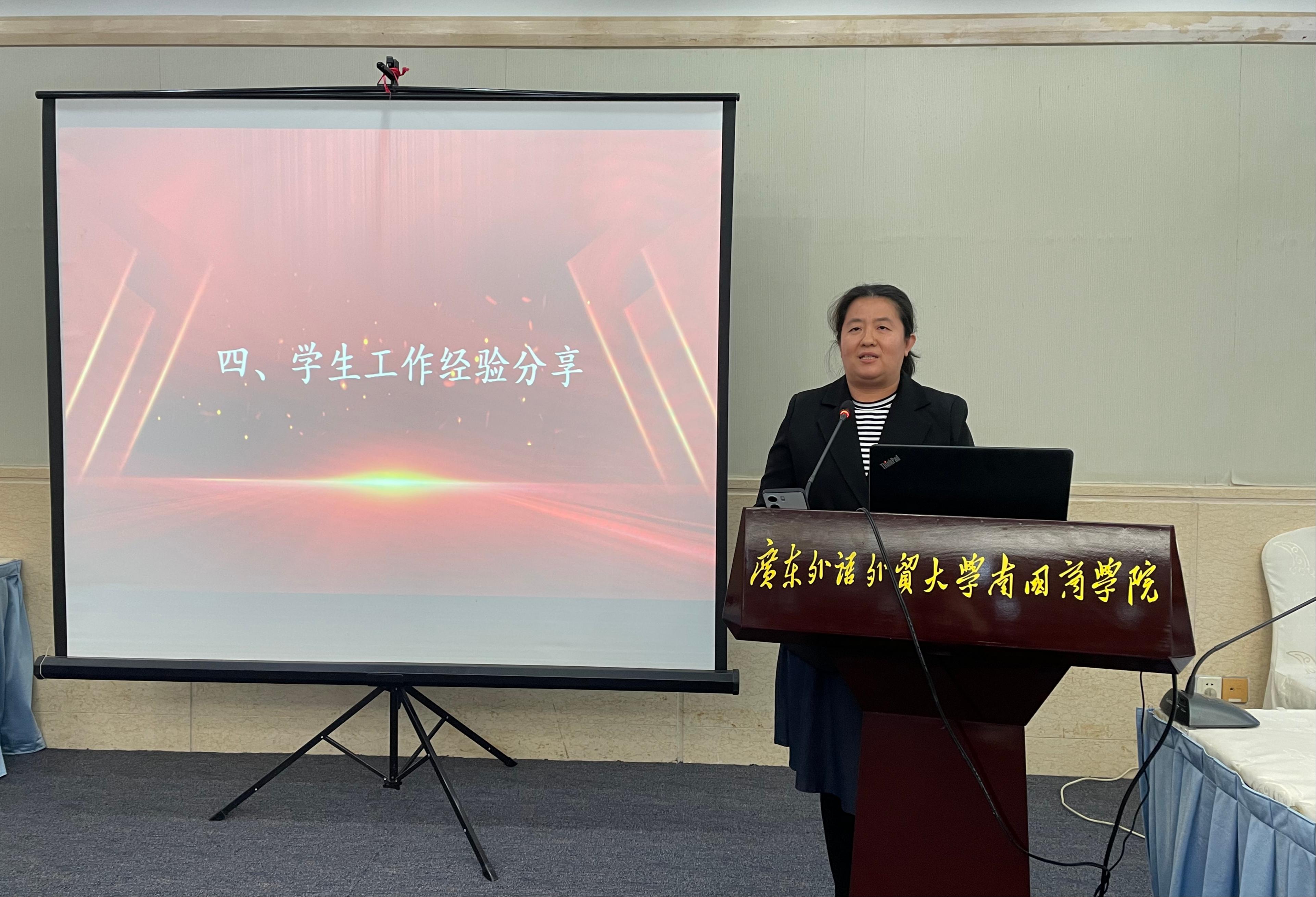 西语学院党总支书记高彩云代表学生工作先进集体,分享了以团队协作和人文关怀为核心的工作理念。学院团队秉持“互相包容、欣赏、学习”原则,在工作中主动补位、形成合力;注重通过温情引导拉近师生距离,并创新性提出打造辅导员“个人人设”,使其成为学生既尊敬又亲近的榜样;同时积极联动各方力量,构建了多维度的协同育人格局。