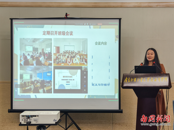 优秀班导师陈智秀老师分享了她的育人实践经验。她强调以班会为桥梁,通过问卷、谈话等方式精准掌握学生动态,并以两个成功转化案例,阐释了如何通过正向激励唤醒学生规则意识,实现从“独白”到“对话”的育人方式转变,做学生成长的引路人。