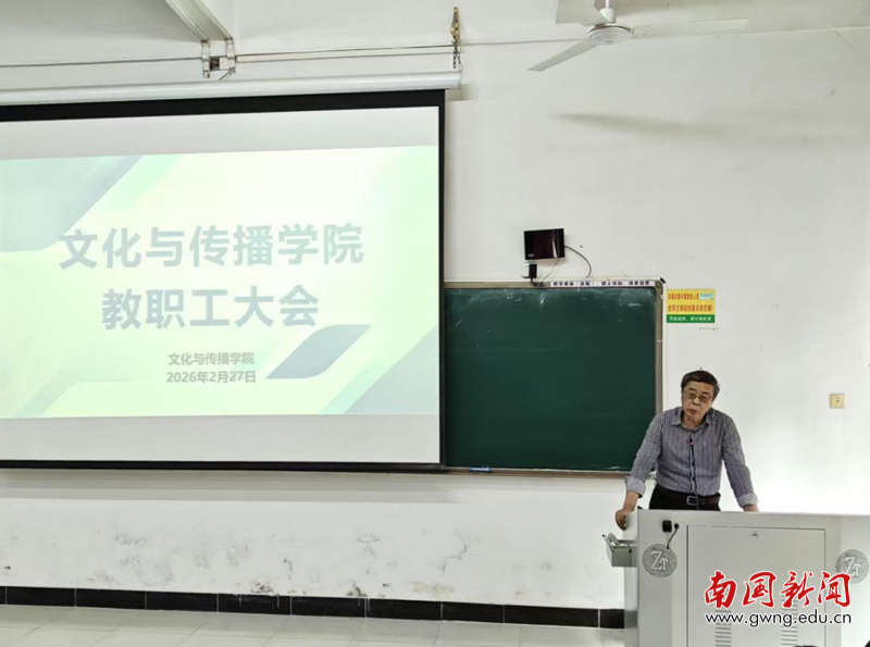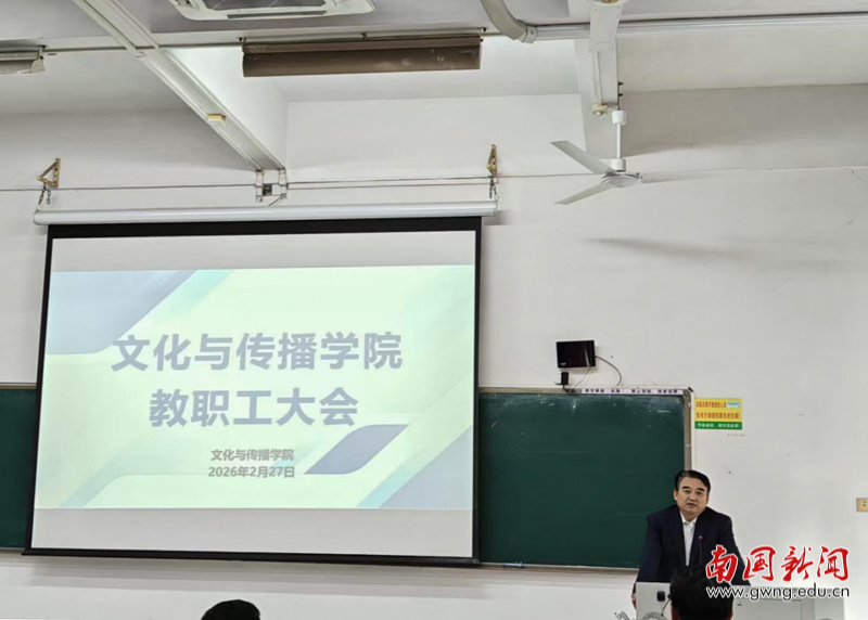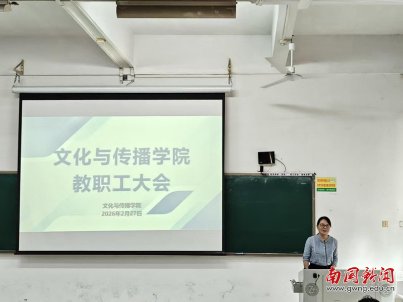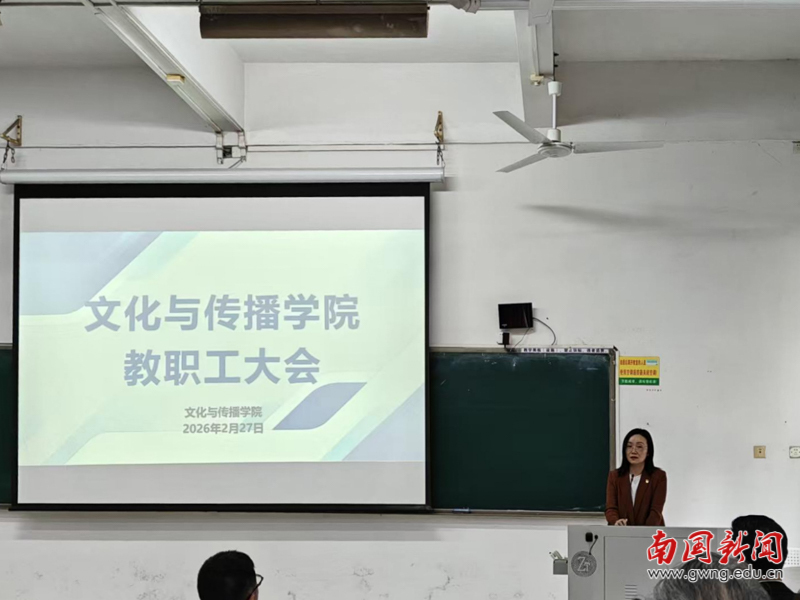 本网讯 为统一思想、明确任务、凝聚学院发展合力,2026年2月27日下午3点,文化与传播学院于教学楼G103室召开干部任命宣读会议暨2026年第一次教职工大会。学院分管校领导、学院新一届领导班子及全体教职工参会,会议系统部署新学期各项重点工作,为学院高质量发展锚定方向、明晰路径。