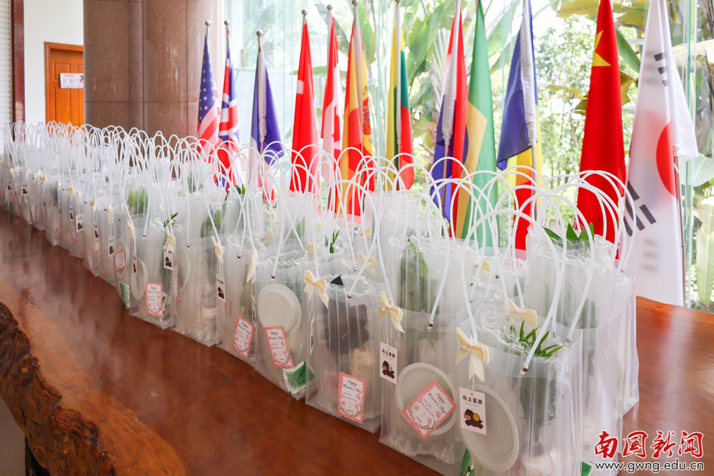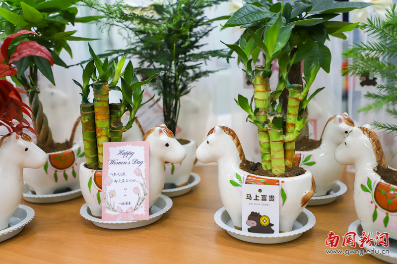 校团委老师为女教工准备了十余种盆栽(杜逢 摄)