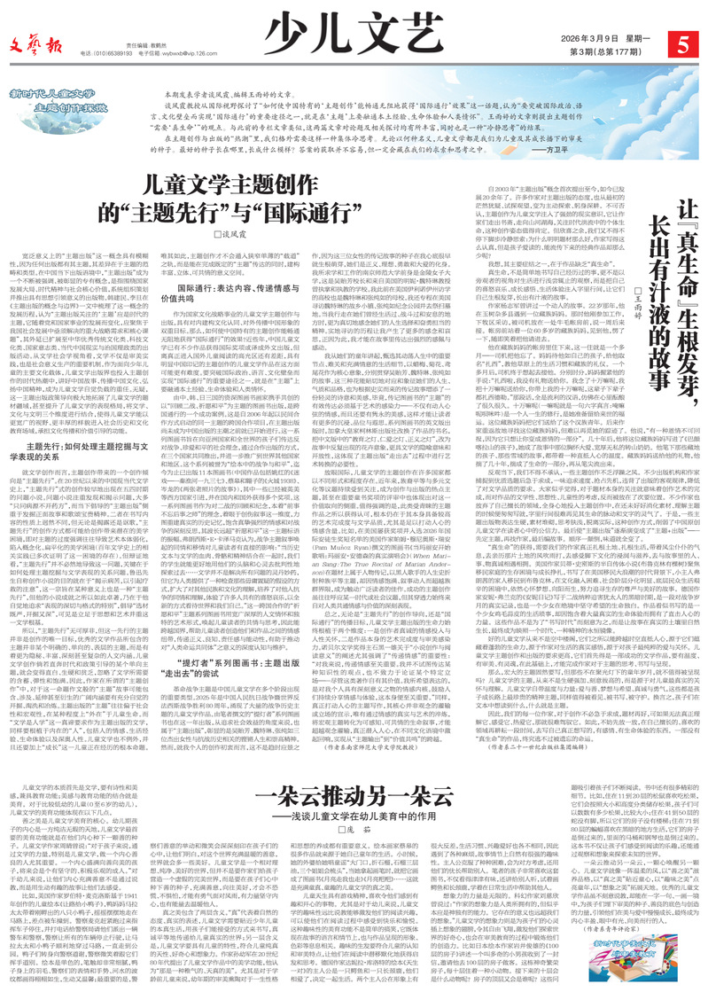 文艺报《儿童文学主题创作的“主题先行”与“国际通行”》