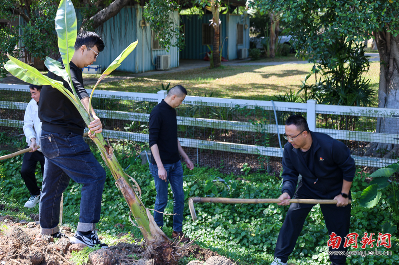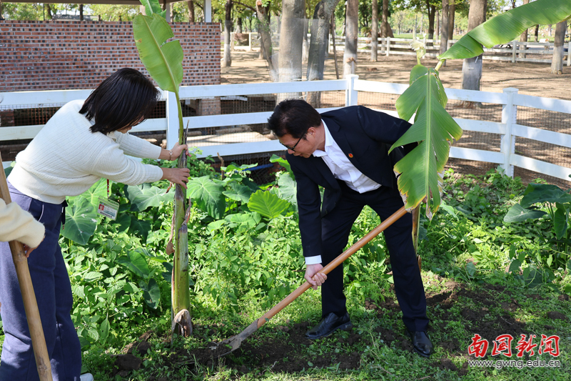 经过一个多小时的并肩奋战,校内绿化基地与羊圈旁区域焕然一新。一株株芭蕉树苗错落有致、迎风挺立,在春日暖阳下焕发出勃勃生机,成为校园里一道亮丽的风景线。
