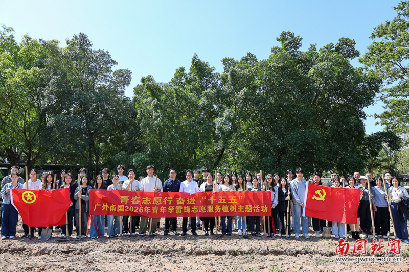 本网讯 春回大地万物苏,植树添绿正当时。为深入践行“绿水青山就是金山银山”理念,积极响应国家“双碳”目标,弘扬雷锋志愿服务精神,3月12日植树节到来之际,我校在绿化基地开展了以“青春志愿行 奋进‘十五五’”为主题的2026年青年学雷锋志愿服务植树活动。此次活动将劳动教育、生态思政与志愿服务深度融合,校领导、校团委负责人、各学院师生代表及机关第五党支部全体党员齐聚一堂,共播绿色希望。