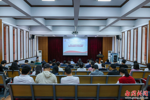 本网讯 3月19日,我校召开2026年全面从严治党暨突出问题整治工作推进会,深入贯彻落实全面从严治党要求,部署全面从严治党的六大重点任务,聚焦五类突出问题开展专项整治,进一步压实管党治党政治责任,营造风清气正的校园政治生态和育人环境,为学校“十五五”发展开好局起好步提供坚强政治保障。学校党员校领导,各职能部门主要负责人,各学院(教学部)相关负责人及各党总支、党支部相关人员参加会议,党委组织部部长郭婷主持会议。