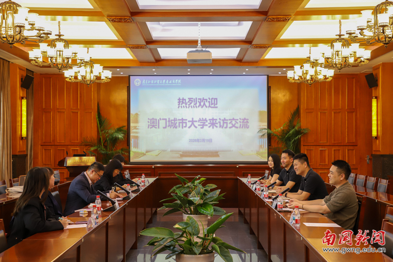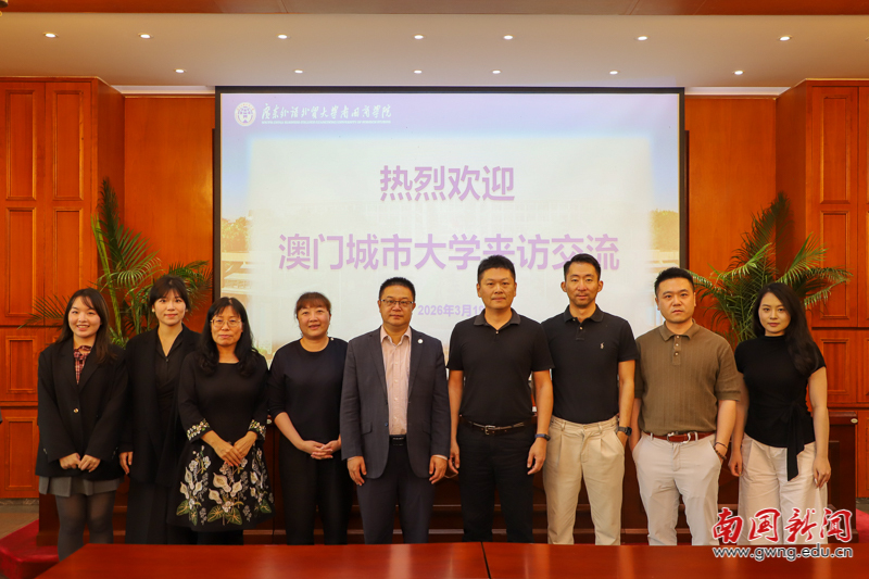 本网讯 3月19日下午,澳门城市大学代表团一行莅临广东外语外贸大学南国商学院,开展校际合作交流访问。此次访问旨在深化两校在人才培养、师资发展与学术协作等方面的务实合作,重点围绕硕士研究生申请、暑期访学项目、教师博士进修与短期访学等核心议题展开洽谈。