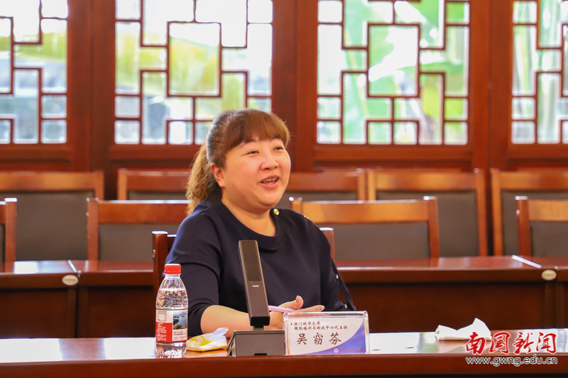 活动于14时30分正式开始。澳门城市大学代表团抵达我校后,双方首先在行政楼一楼国际会议厅举行座谈会。会上,澳门城市大学国际旅游与管理学院执行副院长李玺与我校管理学院副院长陈书星分别就两校的专业设置、课程体系及教学特色作了详细介绍,并围绕专业交流与共建机制进行了初步探讨。