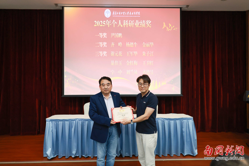 为树立典型、激励奋进,会议举行了隆重的颁奖仪式。副校长王关义宣读了《关于表彰2025年度科研业绩奖获奖单位和个人的决定》,对在过去一年中为学校科研事业发展做出突出贡献的集体与个人予以表彰。与会校领导为获奖代表颁奖,并勉励大家珍惜荣誉、再接再厉,充分发挥示范引领作用。
