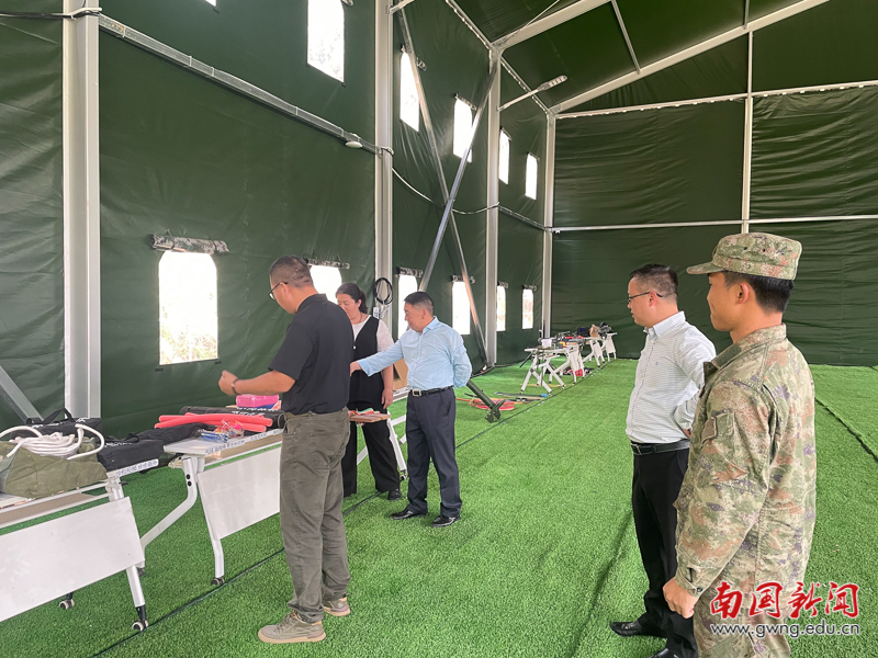 广东省筑梦九州教育基地负责人郭景全热情接待学校调研团队,并陪同参观交流。调研过程中,郭景全详细介绍了基地的发展概况、特色资源与运营成果。作为广东省级国防教育基地,基地坐拥2000亩教学场地,拥有长征文化路、实景战场、军事科技教室等特色设施,成熟的国防教育课程体系与完善的运营保障能力,年接待研学团队数万人次,在国防教育、研学实践等领域具备显著的场景优势与行业资源。