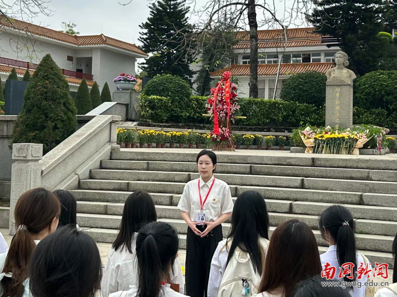 本网讯 为传承红色精神,厚植爱国情怀,强化党员党性修养。文化与传播学院第四党支部联合学院心理辅导站于4月2日下午在广州银河烈士陵园开展以“缅怀先烈悟担当、滋养心灵促成长”为主题的党日活动。文化与传播学院第四党支部书记邓凯文、组织委员董春晖、宣传委员刘钦明、心理辅导站乔旖旭老师、部分支部成员及辅导站同学参与此次活动。本次活动旨在通过庄严肃穆的祭扫仪式,引导党员在缅怀先烈中感悟初心使命,厚植爱国情怀,坚定理想信念,汲取奋进力量。活动激励学生以先烈精神为指引,勇担时代责任,践行入党誓词,争做新时代合格青年。