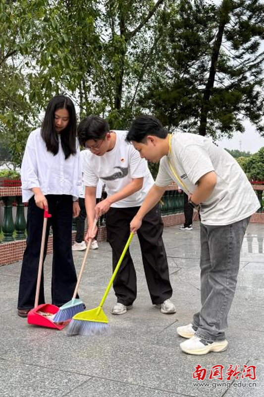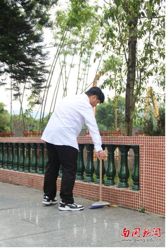 祭扫仪式启动前,全体师生手持清扫工具,分工协作、有序行动——细致清扫陵园落叶,温柔擦拭碑身尘土,用心清理周边环境。以躬身实践守护英烈丰碑,让红色纪念阵地始终保持洁净与庄严,将缅怀先烈的敬意,融入每一个踏实的动作之中。