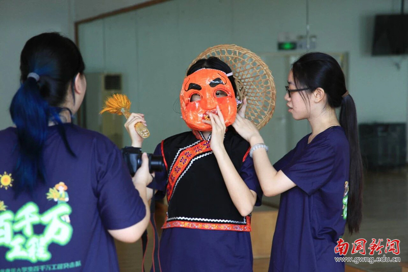 立足云浮深厚的文化底蕴,东扬队深入挖掘当地红色文化与非遗资源,全力推动文化传承与创新。团队成员走访红色遗址、访谈老党员,梳理尘封的党史故事,让红色基因代代相传;聚焦云浮禾楼舞、石雕、根雕等非遗技艺,组建调研团深入云浮市文化馆、图书馆及兰寨村等传承地,走访禾楼舞传承人傅志坤等民间艺人,系统梳理非遗技艺的历史脉络与文化内涵,拍摄非遗纪录片,记录技艺传承故事,让古老的非遗技艺走出深巷、走进大众视野。此外,团队还发挥多语言优势,用中文、粤语、日语、英语和泰语介绍云浮文旅亮点,制作宣传片发布于网络平台,进一步扩大云浮文化的影响力,让红色文化与非遗技艺在新时代焕发新生。