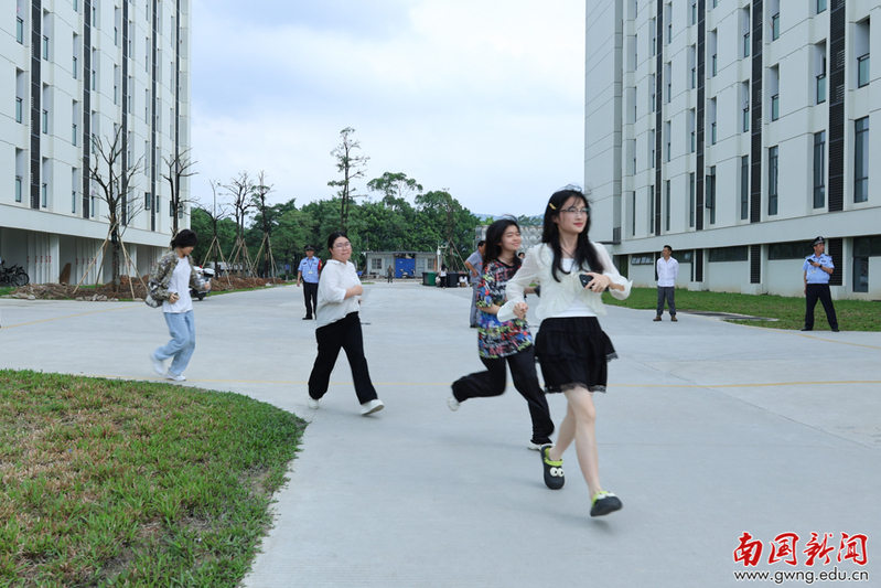 15时30分,急促刺耳的应急警报声准时响起,演练正式启动。听到警报后,全体师生迅速进入应急状态,严格按照预设流程,弯腰低姿、双手护颈,避开危险区域,沿着指定疏散路线快速有序向各集结点撤离。撤离过程中,学生们沉着冷静、听从指挥,彼此提醒保持安全间距、注意脚下障碍,无拥挤、无慌乱现象;辅导员、宿管人员及学生志愿者在楼道拐角、楼梯口等关键位置全程引导,及时协助有需要的学生,保障疏散过程安全高效。