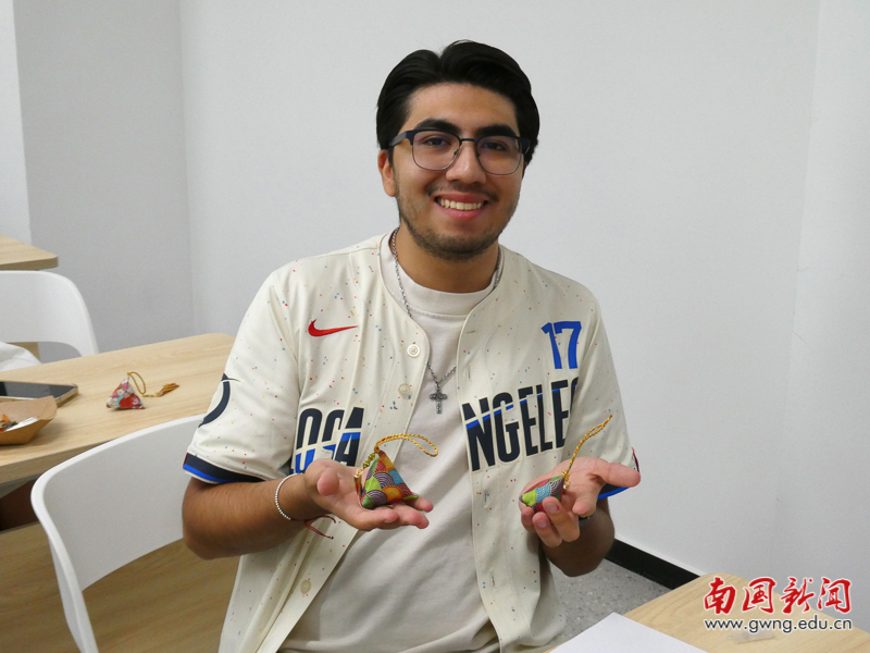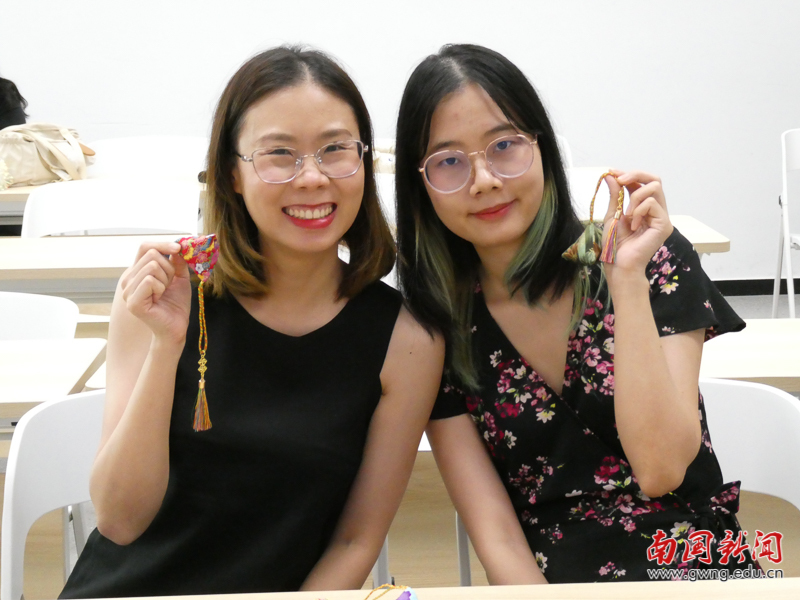 留学生们展示制作的香囊