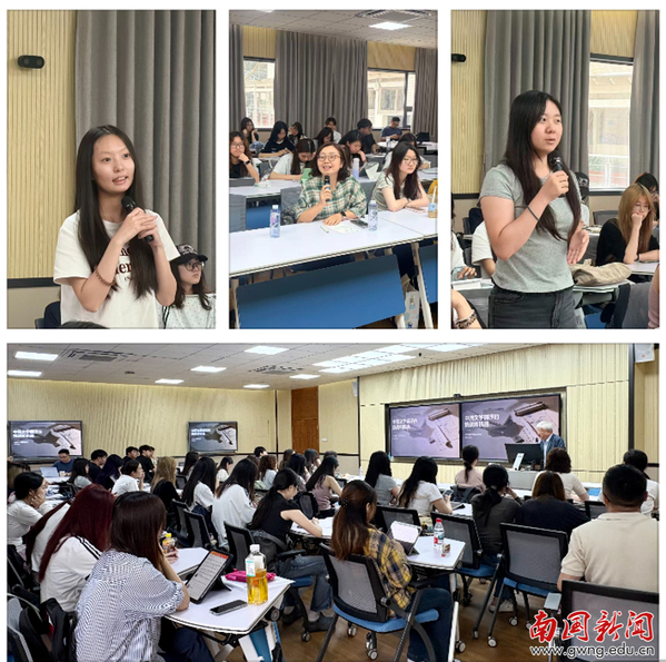 互动交流环节,现场师生踊跃提问。朝鲜语系金红梅教授结合朝鲜语MTI 专业建设与课程设置等问题与李教授深入探讨,李教授结合广西师范大学朝鲜语MTI办学实践给予细致解答。24级学生陈嘉蓥、李凯欣分别就网络媒体与视频载体在中韩翻译中的应用、新造语翻译策略等问题请教,李教授结合行业实践与学术研究逐一回应,为师生提供专业指导。