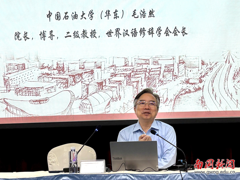 本网讯 4月23日下午,多语种中华文化译介研究中心(下称“译介中心”)主办的专题讲座《从“卡嗓子”到“金话筒”——AI时代外语学科人才培养的六升转型与六化协同》在F101教室顺利举行。中国石油大学(华东)外国语学院院长毛浩然教授应邀担任主讲嘉宾,译介中心副主任李明教授主持本次讲座。讲座中,毛浩然教授围绕新时代外语学科面临的发展困境、转型路径、人才培养新范式,以及“卡嗓子”与“金话筒”的核心矛盾,展开了深刻且富有感染力的分享,现场师生反响热烈,掌声此起彼伏。