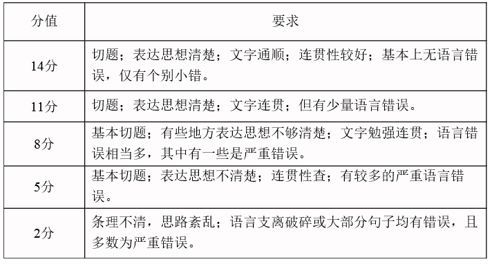 大学英语四级作文评分标准和等级