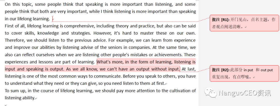 · 衔接与连贯:文章缺乏必要的衔接,虽然文章结尾可以做出总结。需要加强中英文差异的学习。