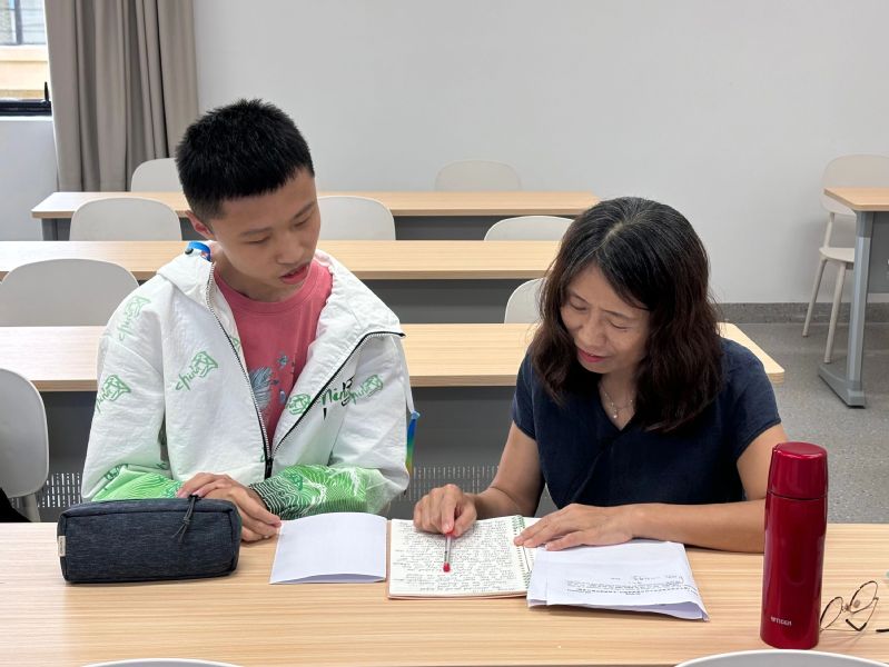 活动中,张桂菊教授与同学们逐一面对面交流。针对学生的写作作品,她从宏观的内容主题、文章结构到微观的语法和用词给出全方位的细致指导,并鼓励积累运用书中好句子。此外,她还给出实用建议,包括平时多练习、重视英语写作比赛,考试时合理分配时间并检查错误,以及写作时紧扣问题用名词等细节举例。