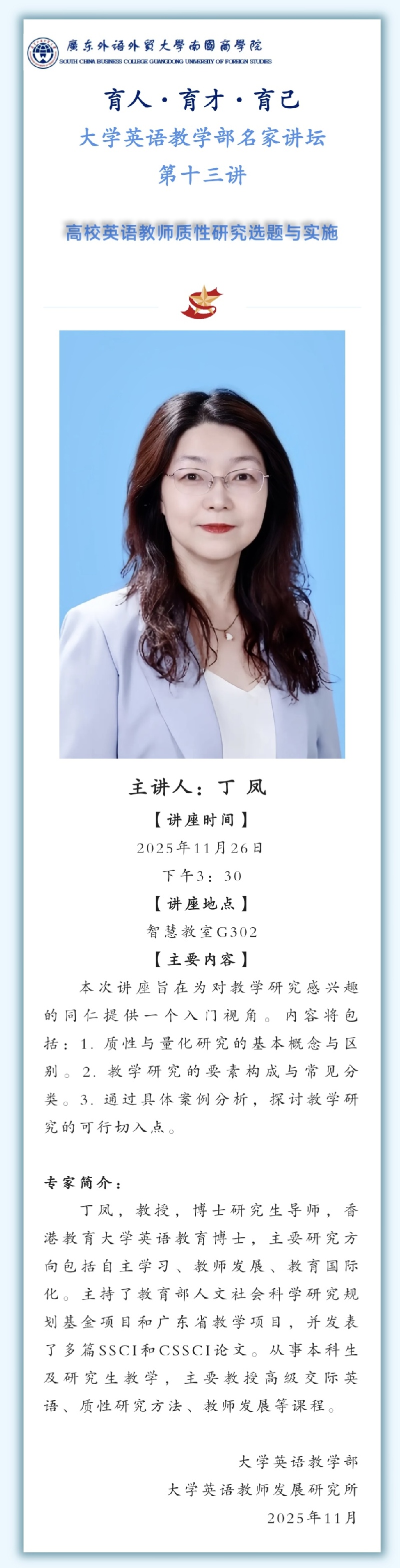 大英部名师讲坛第十三讲:高校英语教师质性研究选题与实施