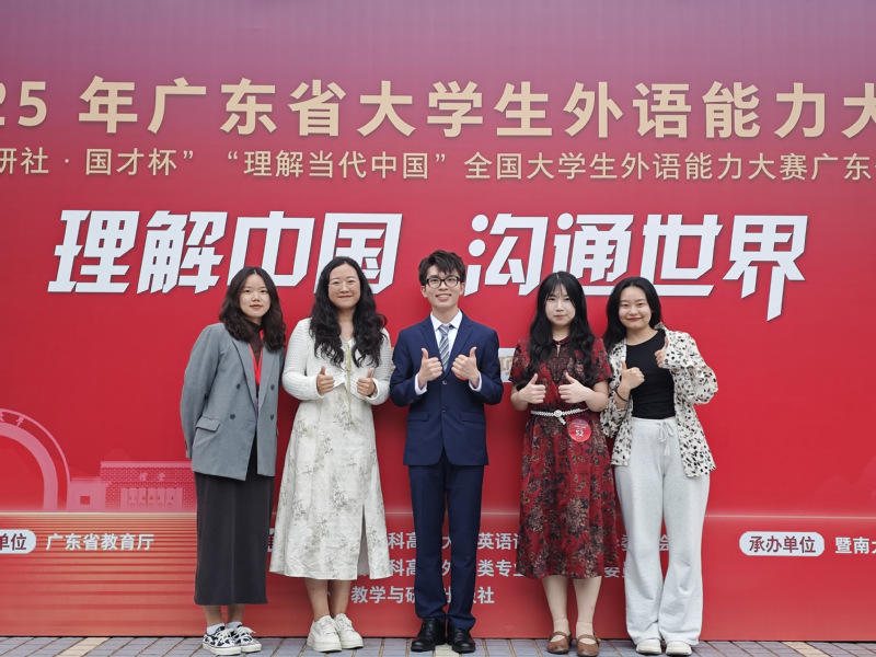 在日前公示的2025年广东省大学生外语能力大赛暨“外研社·国才杯”“理解当代中国”全国大学生外语能力大赛广东省省赛获奖名单中,我校大学英语教学部选送的优秀选手与全省各大高校学生同台竞技,收获颇丰,共取得了1金1银2铜的好成绩,24二外英语创新班(24葡萄牙语)李芊雨同学获得国际传播综合能力赛项国赛晋级资格。大英部唐翠翠、于恩泽、李柯卫三位指导老师凭借专业的指导与悉心的付出,荣获“优秀指导老师”称号。