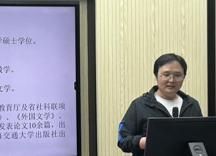 首先,黎会华教授代表《英语文学选读与鉴赏》课程团队,以层层递进的方式,向与会教师展示了一堂将语言教学升华为价值观引领的“金课”,生动呈现了思政育人的创新实践。