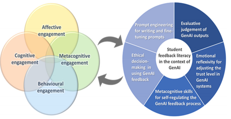研究进一步提出,在生成式人工智能背景下,应重视培养学生的反馈素养,具体包括提示工程、评估判断、情感反思、元认知策略和伦理决策等五项要素。这一理论框架扩展了传统的三元参与模型,为后续在教育情境中深化相关研究与设计干预策略提供了重要的理论与实证基础。