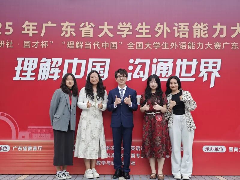 在日前公示的2025年广东省大学生外语能力大赛暨“外研社·国才杯”“理解当代中国”全国大学生外语能力大赛广东省省赛获奖名单中,我校大学英语教学部选送的优秀选手与全省各大高校学生同台竞技,收获颇丰,共取得了1金1银2铜的好成绩,24第二外语(英语)创新班的李芊雨同学获得国际传播综合能力赛项国赛铜奖(指导教师:周丽姿、于恩泽、唐翠翠)。大英部唐翠翠、于恩泽、李柯卫三位指导老师凭借专业的指导与悉心的付出,荣获“优秀指导老师”称号。