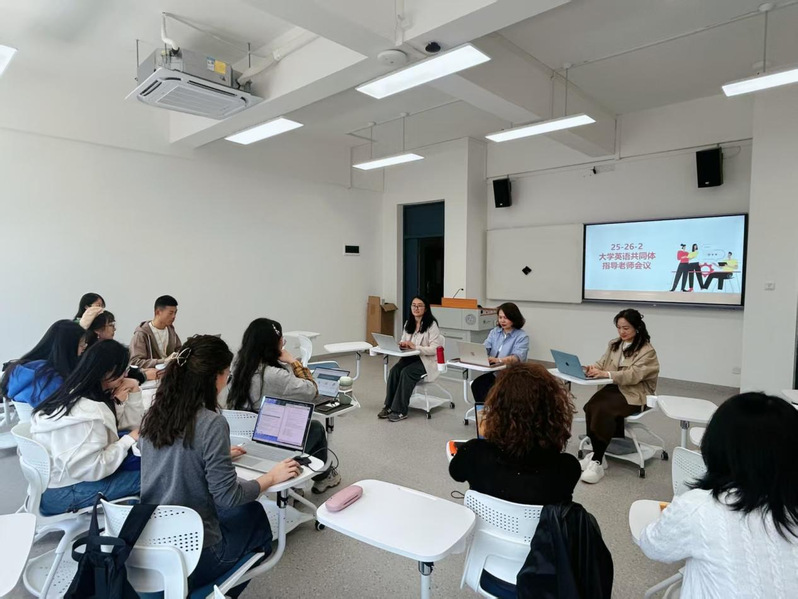 3月12日下午,大学英语教学部在英文楼大英部实训室B205召开学习共同体指导教师研讨会,旨在深入探讨共同体各团运行中的实际问题,并明确下一阶段的工作思路与任务规划。会议由主任助理柯伊蔓主持,部门王瑞英主任、许秀芬主任助理、学习共同体各团负责人及骨干成员参加。