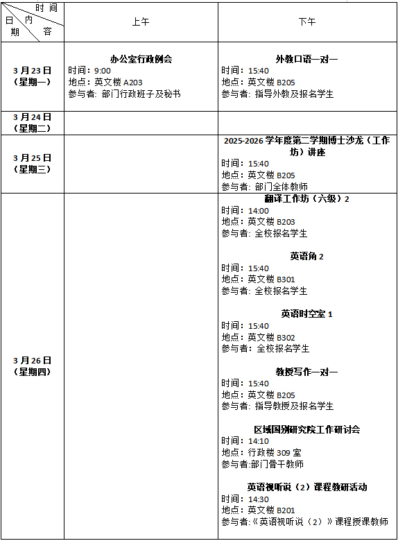 2026年春季学期第4周会议和活动安排表