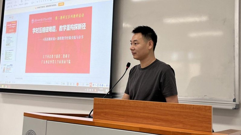为应对《英语视听说》课程学分缩减及单双周授课带来的教学挑战,3月26日下午,大学英语教学部第二教研室在英文楼B201举行课程教学经验交流教研活动。活动由教研室主任何承辉老师主持,视听说课程全体授课教师参加,围绕教学内容重构、教学模式创新、评价方式改革及四级口语听力融合等议题展开深入研讨。