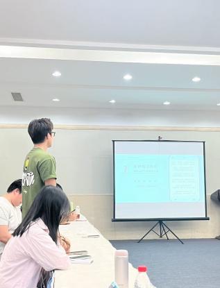 在解析过程中,陈铮老师采用了独特的教学方法:先让原汁原味的阿拉伯语吟诵萦绕全场,使学生直观感受诗歌的韵律之美;随后深入浅出地剖析诗作的文化内涵与历史背景。尤为精彩的是,她信手拈来意境相通的中国古典诗词作为对照,在中阿文明互鉴中生动展现了中阿文化在情感表达和哲学思考上的共鸣与对话,充分体现了我校国际化办学特色的深刻内涵。