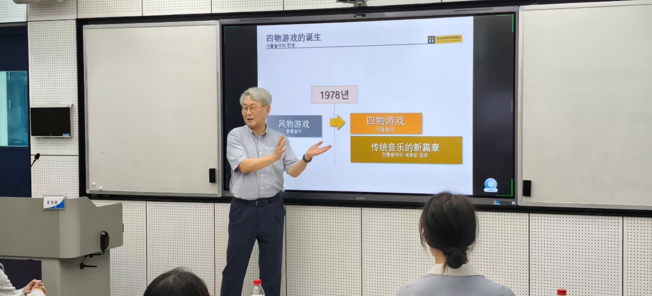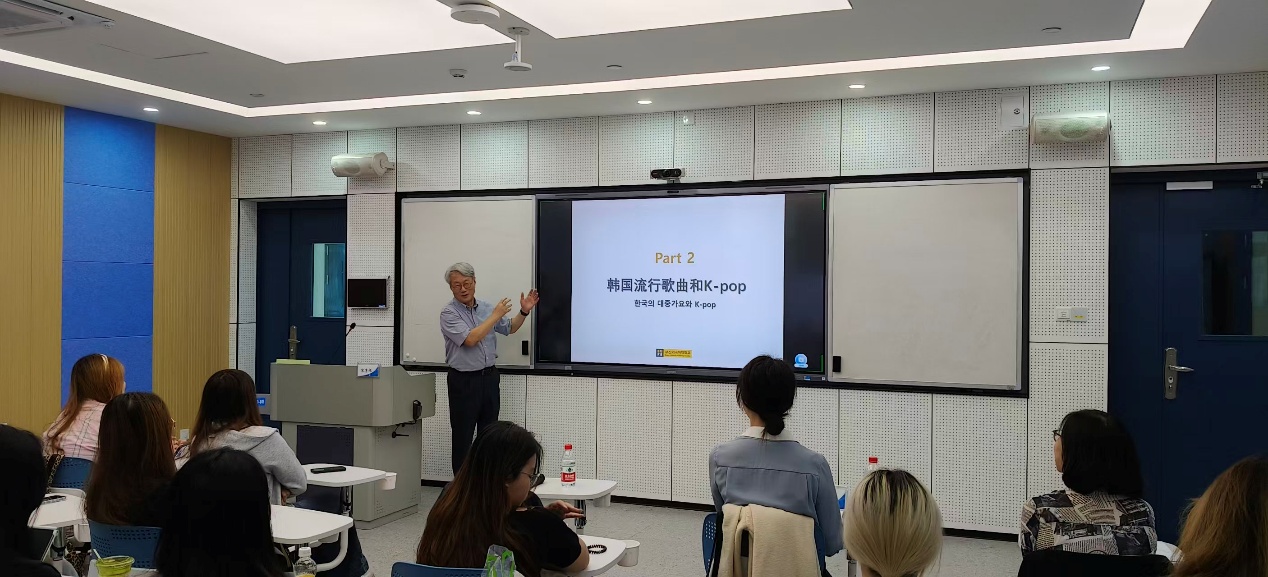 11月6日,在教师发展中心的大力支持下,东语学院成功举办了题为《韩国文化与大众音乐:从传统音乐到K-pop》的学术讲座。本次讲座由韩国釜山外国语大学名誉教授宋享根博士主讲,朝鲜语系主任金丽华老师主持,全系师生踊跃参与。