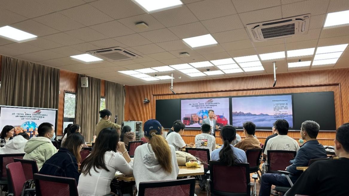 签约仪式后,李尚峰博士在 G301 教室为阿拉伯语专业学生开展了题为《“语”物流同行 — 解锁阿拉伯语专业的国际物流黄金赛道》的专题讲座。李博士通过当前“一带一路” 倡议、沙特 “2030 愿景”及中阿进出口贸易额的增长,强调了阿拉伯语在国际物流行业中的重要性与阿拉伯语学子在国际物流领域的独特优势与广阔前景,此外,详细讲解了国际物流的流程、具体案例以及从事相关工作所具备的核心条件,通过现场的问卷调查解析了学生适合从事的岗位,从而明确学习目标,并强调“阿拉伯语不是天书,而是打开中东市场的金钥匙”。