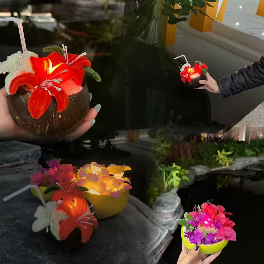 活动以传统漂水灯仪式结束。在专业教师环保理念的指导下,学生们展示了亲手制作的DIY水灯,充分利用柚子皮、椰壳碗、捡拾的鲜花等环保材料,既保留了泰国水灯“天然材料”的传统特质,又融入了环保理念与青春创意。一盏盏承载着美好祝愿的水灯在水面绽放微光,成为校园夜晚中一道独特的风景。