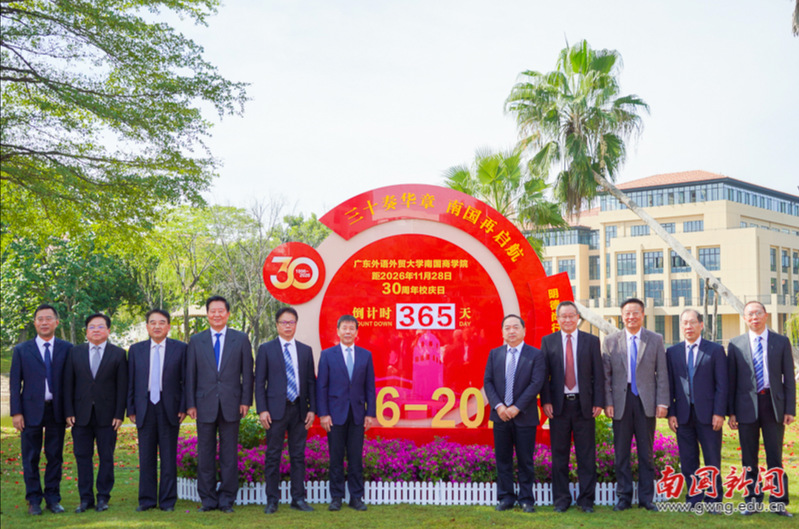 On the morning of November 28, 2025, warm winter sunlight bathed the Torch Music Lawn on campus. SCBC leaders, former administrators, distinguished professors, heads of academic units, discipline leaders, faculty and student representatives, along with alumni gathered to witness the historic moment: the launch of the one-year countdown to the 30th anniversary celebration of SCBC. Chairman Ding Xiaojun and the entire university leadership unveiled the countdown sign bearing the theme “Thirty Years of Brilliance, New Chapter of SCBC” The ceremony was presided over by Vice President Wang Mingyu.